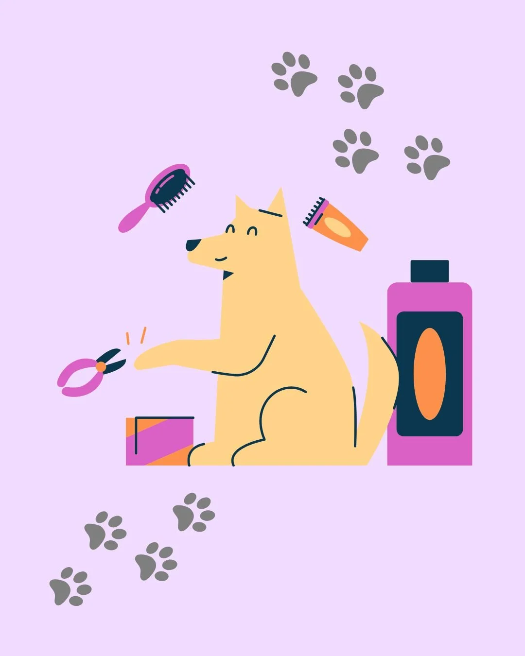 Hundefell wird gebürstet und auf gewünschte Länge geschnitten. (Waschen und Föhnen sind nicht inkludiert.)